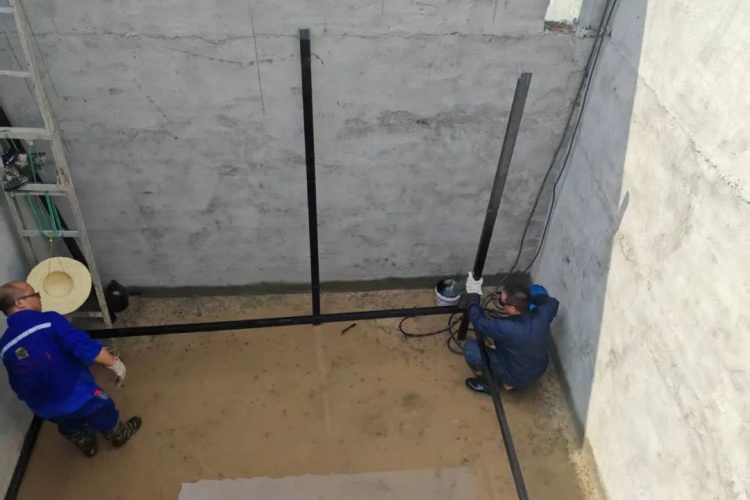 屠宰場污水處理池池深四米五,池內像個巨型“蒸籠”——陽光直直曬進池底,熱氣在池壁間循環(huán),比地面更顯悶熱。而焊工師傅們的工作,正要在這樣的環(huán)境內開展——他們需要進池,將一根根鋼架精準焊接,為后續(xù)設備安裝創(chuàng)造條件。